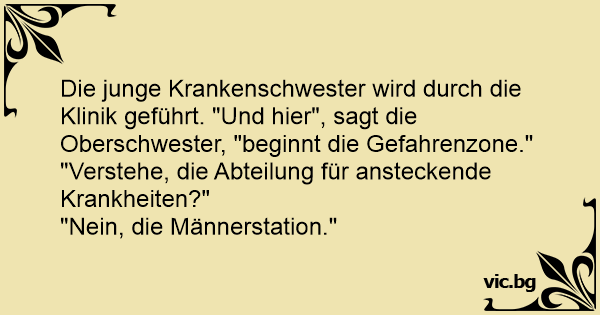 Die junge Krankenschwester wird durch die Klinik geführt. "Und hier", sagt die Oberschwester, "beginnt die Gefahrenzone."