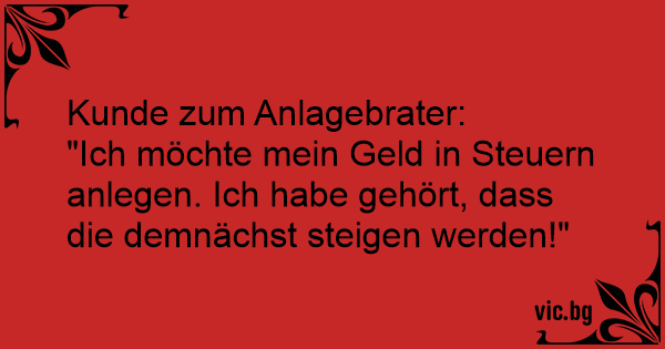 "Ich möchte mein Geld in Steuern anlegen. Ich habe gehört, dass die demnächst steigen werden!"