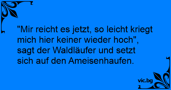 "Mir reicht es jetzt, so leicht kriegt mich hier keiner wieder hoch", sagt der Waldläufer und setzt sich auf den Ameisenhaufen.