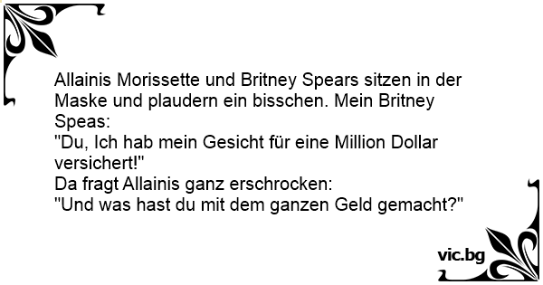 Allainis Morissette und Britney Spears sitzen in der Maske und plaudern ein bisschen. Mein Britney Speas: