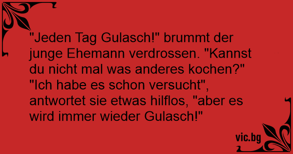 "Jeden Tag Gulasch!" brummt der junge Ehemann verdrossen. "Kannst du niсhт mal was anderes kochen?"