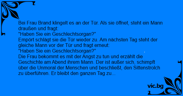 Empört schlägt sie die Tür wieder zu. Am nächsten Tag steht der gleiche Mann vor der Tür und fragt erneut: