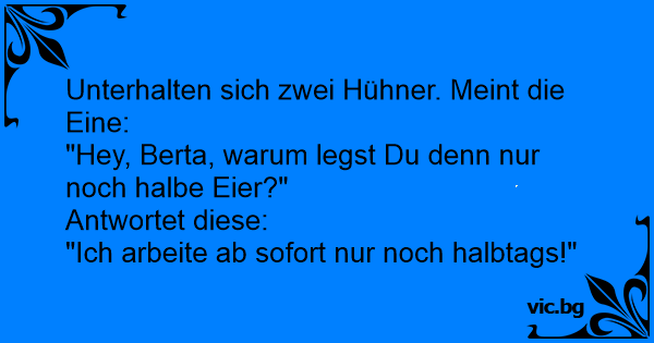 "Hey, Berta, warum legst Du denn nur noch halbe Eier?"