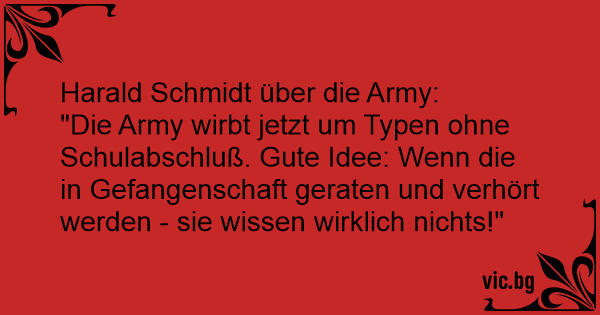 "Die Army wirbt jetzt um Typen ohne Schulabschluß. Gute Idee: Wenn die in Gefangenschaft geraten und verhört werden - sie wissen wirklich nichts!"