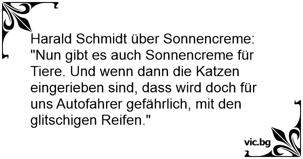 "Nun gibt es auch Sonnencreme für Tiere. Und wenn dann die Katzen eingerieben sind, dass wird doch für uns Autofahrer gefährlich, mit den glitschigen Reifen."