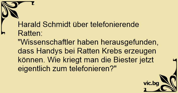 "Wissenschaftler haben herausgefunden, dass Handys bei Ratten Krebs erzeugen können. Wie kriegt man die Biester jetzt eigentlich zum telefonieren?"