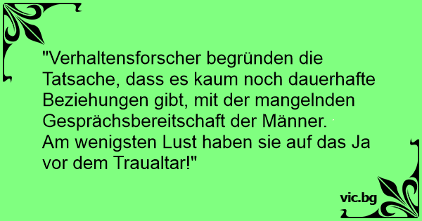 "Verhaltensforscher begründen die Tatsache, dass es kaum noch dauerhafte Beziehungen gibt, mit der mangelnden Gesprächsbereitschaft der Männer.
