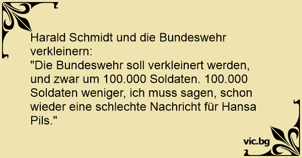 "Die Bundeswehr soll verkleinert werden, und zwar um 100.000 Soldaten. 100.000 Soldaten weniger, ich muss sagen, schon wieder eine schlechte Nachricht für Hansa Pils."