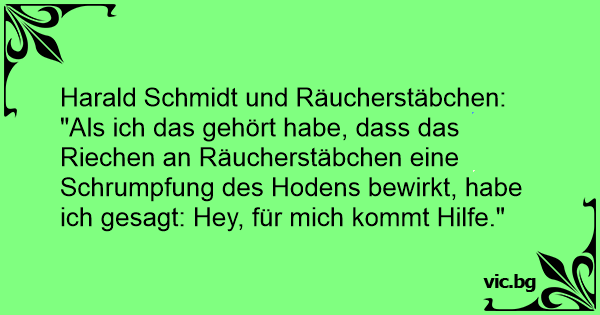 "Als ich das gehört habe, dass das Riechen an Räucherstäbchen eine Schrumpfung des Hodens bewirkt, habe ich gesagt: Hey, für mich kommt Hilfe."