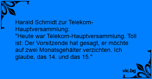 "Heute war Telekom-Hauptversammlung. Toll ist: Der Vorsitzende hat gesagt, er möchte auf zwei Monatsgehälter verzichten. Ich glaube, das 14. und das 15."