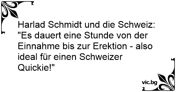 "Es dauert eine Stunde von der Einnahme bis zur Erektion - also ideal für einen Schweizer Quickie!"