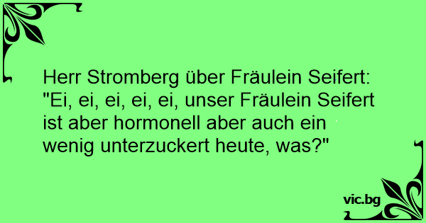 "Ei, ei, ei, ei, ei, unser Fräulein Seifert ist aber hormonell aber auch ein wenig unterzuckert heute, was?"
