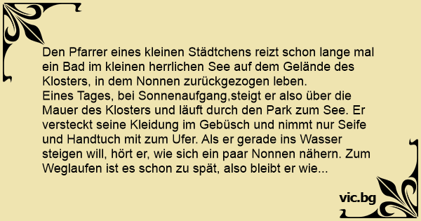 Den Pfarrer eines kleinen Städtchens reizt schon lange mal ein Bad im kleinen herrlichen See auf dem Gelände des Klosters, in dem Nonnen zurückgezogen leben.