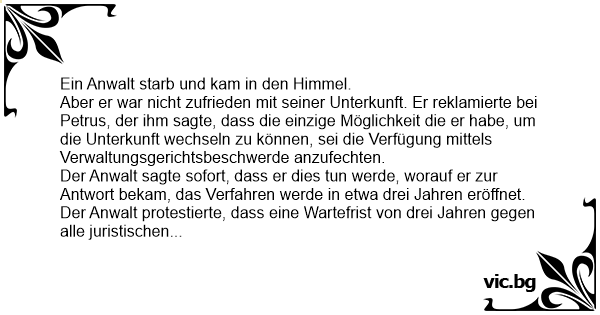 Ein Anwalt starb und kam in den Himmel.
