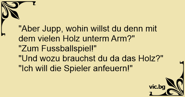 "Aber Jupp, wohin willst du denn mit dem vielen Holz unterm Arm?"