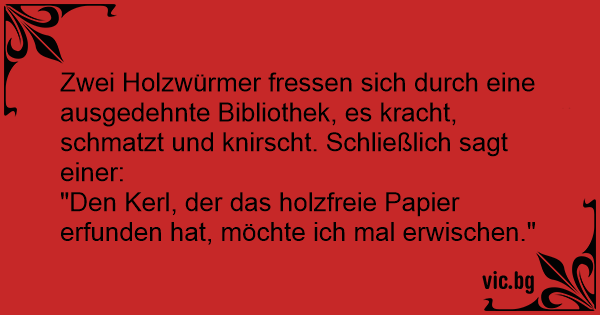 Zwei Holzwürmer fressen sich durch eine ausgedehnte Bibliothek, es kracht, schmatzt und knirscht. Schließlich sagt einer: