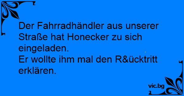 Der Fahrradhändler aus unserer Straße hat Honecker zu sich eingeladen.