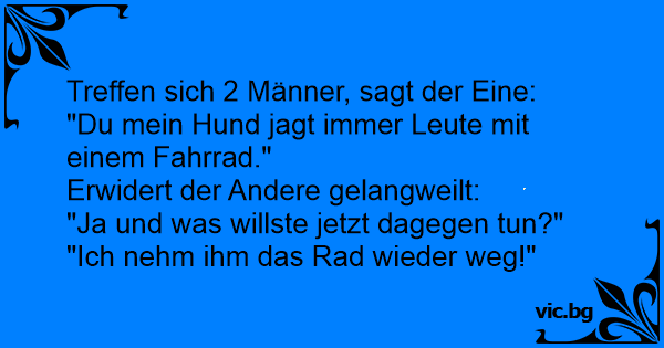 "Du mein Hund jagt immer Leute mit einem Fahrrad."