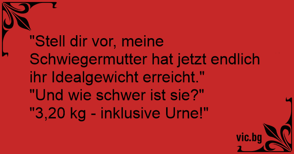 "Stell dir vor, meine Schwiegermutter hat jetzt endlich ihr Idealgewicht erreicht."