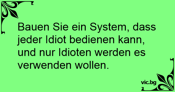 Bauen Sie ein System, dass jeder Idiот bedienen kann, und nur Idioten werden es verwenden wollen.