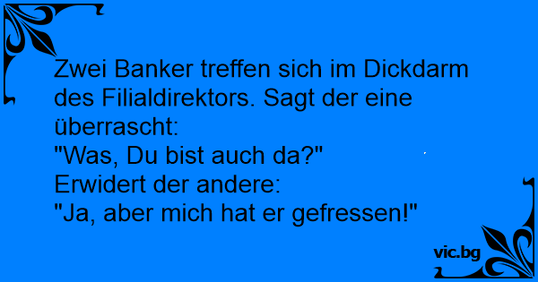 Zwei Banker treffen sich im Dickdarm des Filialdirektors. Sagt der eine überrascht: