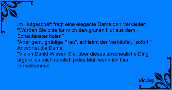 "Würden Sie bitte für mich den grünen Hut aus dem Schaufenster holen?"
