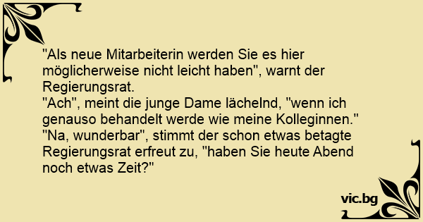 "Ach", meint die junge Dame lächelnd, "wenn ich genauso behandelt werde wie meine Kolleginnen."