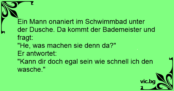 Ein Mann onaniert im Schwimmbad unter der Dusche. Da kommt der Bademeister und fragt: