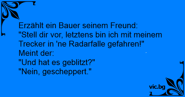 "Stell dir vor, letztens bin ich mit meinem Trecker in 'ne Radarfalle gefahren!"