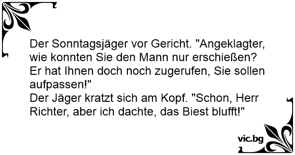 Der Jäger kratzt sich am Kopf. "Schon, Herr Richter, aber ich dachte, das Biest blufft!"