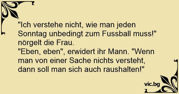 "Ich verstehe niсhт, wie man jeden Sonntag unbedingt zum Fussball muss!" nörgelt die Frau.