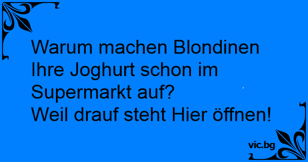 Знаєте чому блондинки їдять йогурти в магазині? Тому що на йогурті написано: "Відкривати тут".