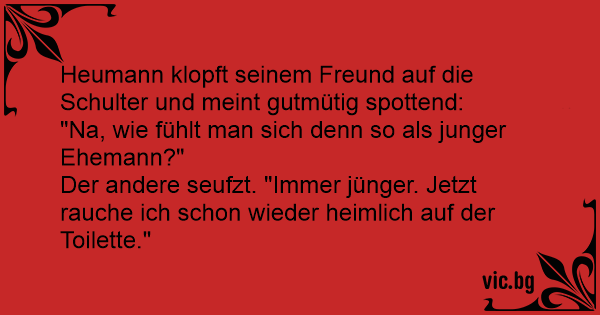 Der andere seufzt. "Immer jünger. Jetzt rauche ich schon wieder heimlich auf der Toilette."