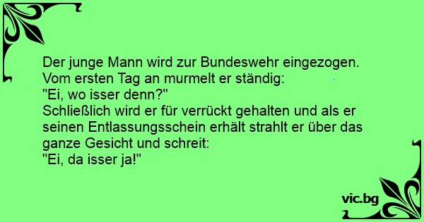 Der junge Mann wird zur Bundeswehr eingezogen. Vom ersten Tag an murmelt er ständig: