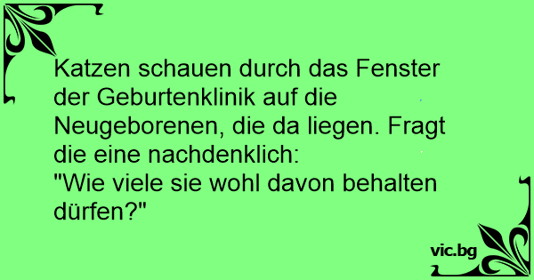 Katzen schauen durch das Fenster der Geburtenklinik auf die Neugeborenen, die da liegen. Fragt die eine nachdenklich: