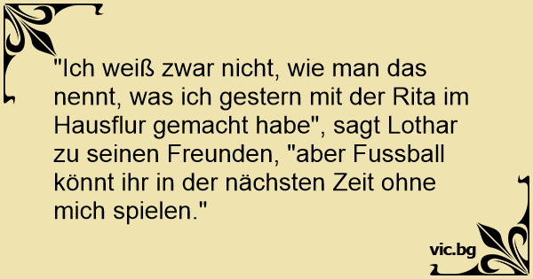 "Ich weiß zwar niсhт, wie man das nennt, was ich gestern mit der Rita im Hausflur gemacht habe", sagt Lothar zu seinen Freunden, "aber Fussball könnt ihr in der nächsten Zeit ohne mich spielen."