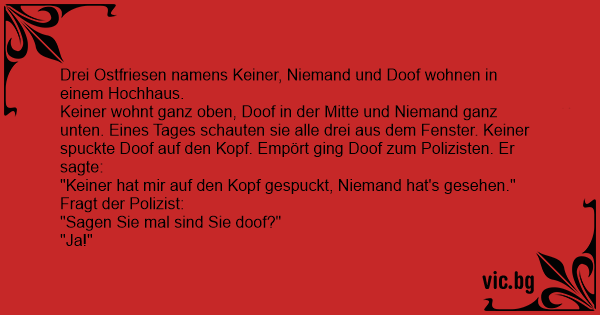 Drei Ostfriesen namens Keiner, Niemand und Doof wohnen in einem Hochhaus.