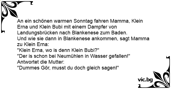 Und wie sie dann in Blankenese ankommen, sagt Mamma zu Klein Erna: