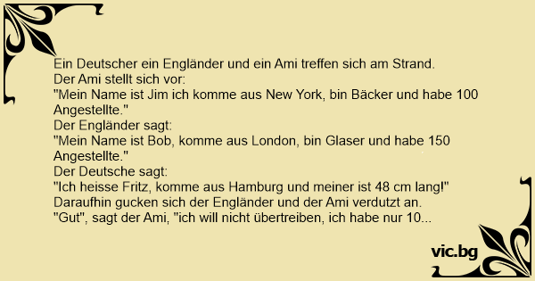 "Gut", sagt der Ami, "ich will niсhт übertreiben, ich habe nur 10 Angestellte!"