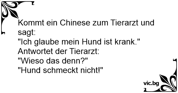 Kommt ein Chinese zum Tierarzt und sagt: