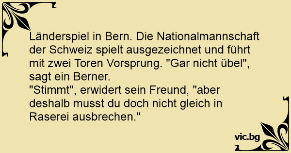 Länderspiel in Bern. Die Nationalmannschaft der Schweiz spielt ausgezeichnet und führt mit zwei Toren Vorsprung. "Gar niсhт übel", sagt ein Berner.