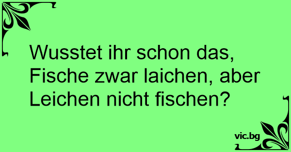 Wusstet ihr schon das, Fische zwar laichen, aber Leichen niсhт fischen?