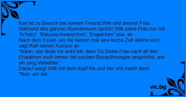 Karl ist zu Besuch bei seinem Freund Willi und dessen Frau.