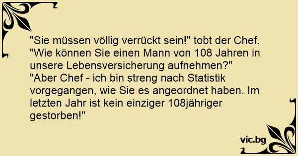"Aber Chef - ich bin streng nach Statistik vorgegangen, wie Sie es angeordnet haben. Im letzten Jahr ist kein einziger 108jähriger gestorben!"