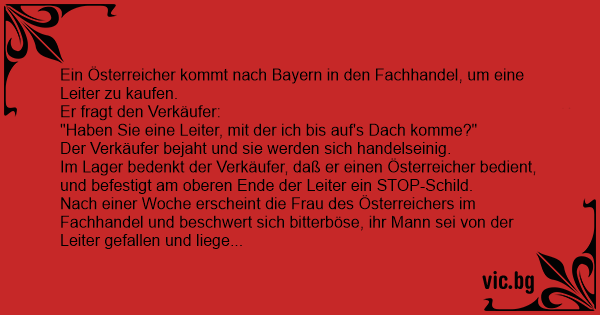 Ein Österreicher kommt nach Bayern in den Fachhandel, um eine Leiter zu kaufen.