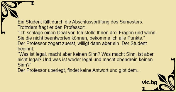 Der Professor überlegt, findet keine Antwort und gibt dem Studenten alle Punkte.