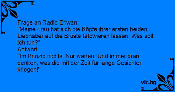 "Meine Frau hat sich die Köpfe ihrer ersten beiden Liebhaber auf die Brüste tätowieren lassen. Was soll ich tun?"