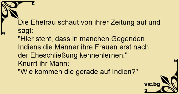 "Hier steht, dass in manchen Gegenden Indiens die Männer ihre Frauen erst nach der Eheschließung kennenlernen."