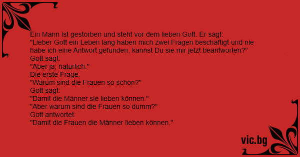 Ein Mann ist gestorben und steht vor dem lieben Gott. Er sagt:
