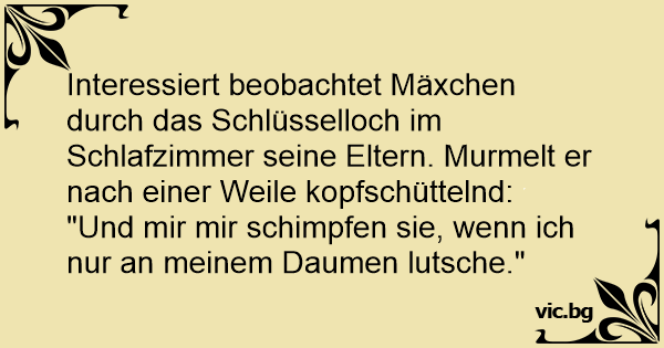 Interessiert beobachtet Mäxchen durch das Schlüsselloch im Schlafzimmer seine Eltern. Murmelt er nach einer Weile kopfschüttelnd: